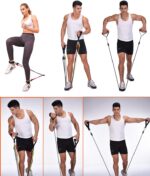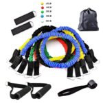 5 * elastic bands: black (30 lbs), blue (25 lbs), red (20 lbs), green (15 lbs), yellow (10 lbs)